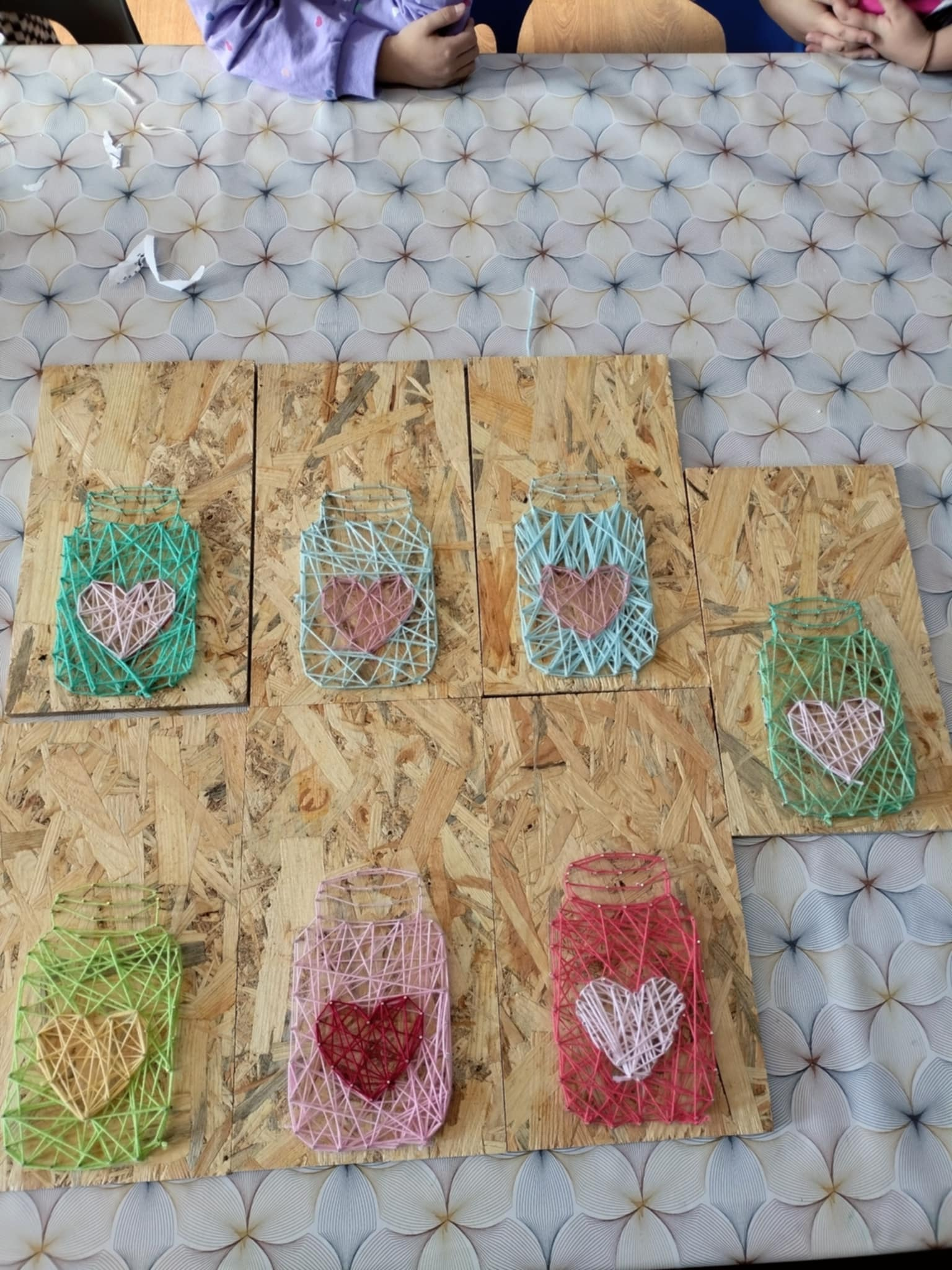 Podczas ostatnich zajęć Artmanii dzieci miały okazję poznać technikę string artu – czyli tworzenia obrazów z nici napinanych na gwoździkach. Uczestnicy przygotowali własnoręcznie flakoniki na kwiaty, łącząc precyzyjne układanie nici z elementami dekoracyjnymi.